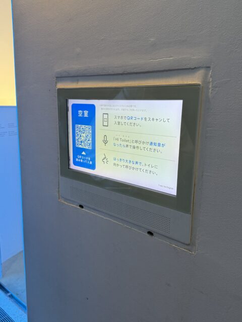 ドーム型が印象的なこのトイレは、自分のスマホと声を使ってドアの開閉や水洗を行うことのできる「非接触型トイレ」をコンセプトにつくられました。残念ながら、見学した際には声にはほぼ反応してくれませんでした。